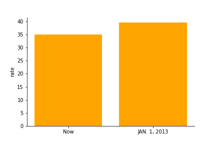 This is a simple bar chart. At first glance, there doesn’t seem to be any problem here; the chart simply illustrates the change between two years, with one year at 39.6% and the other at 35%, indicating a difference of 4.6 percentage points. You may ask yourself why the bars look so different when there’s only a 4.6% gap between them.